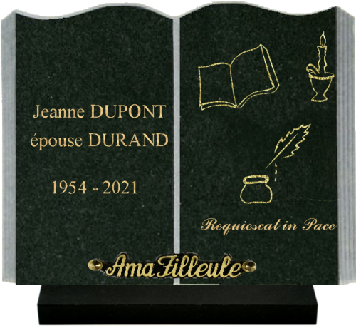Les plaques funéraires en forme de livre que nous vous proposons sont toutes entièrement personnalisables, en quelques clics.