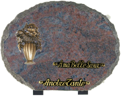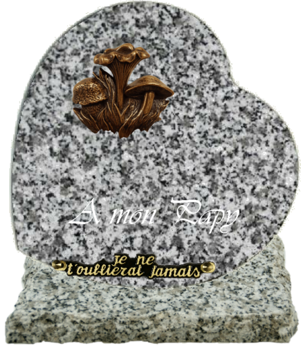plaque coeur 25x20 sur socle granit tarn avec bronze champignon et gravure d une inscription
