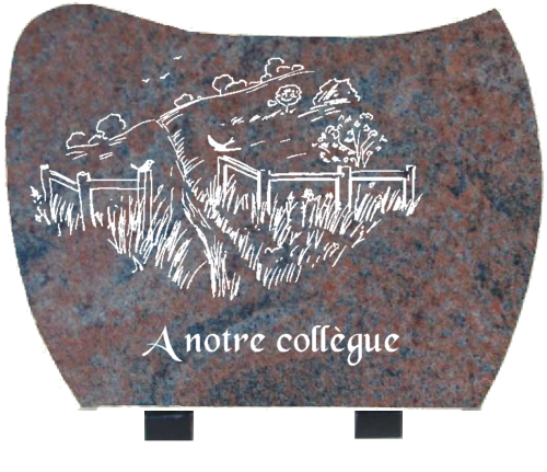 granit multicolor 30x23 cm avec motif paysage campagne et gravure à notre collègue