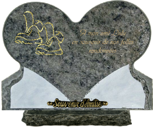 plaque coeur 33x25 sur socle granit vert tropical avec gravure randonnée et gravure d une inscription avec un inter